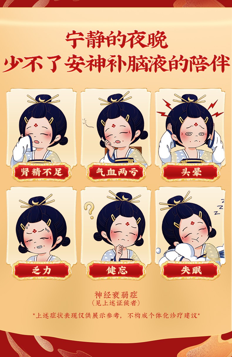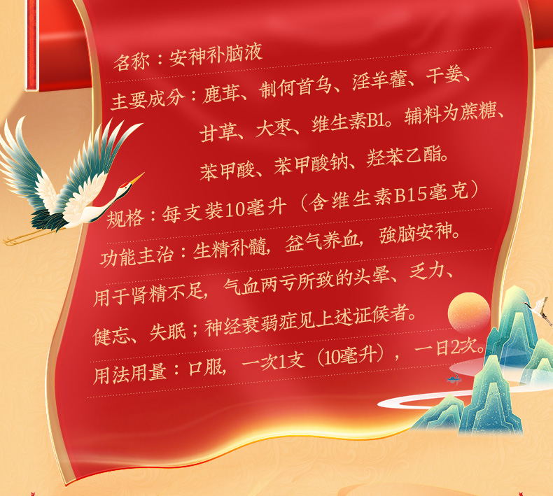 【成份】:鹿茸、制何首乌、淫羊藿、干姜、甘草、大枣、维生素B1。辅料为蔗糖、苯甲酸、苯甲酸钠、羟苯乙酯。