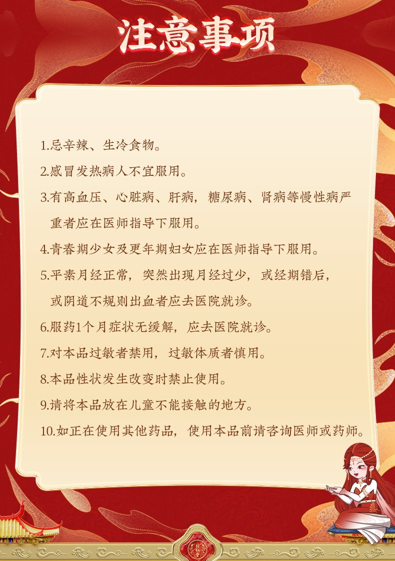 4、青春期少女及更年期妇女应在医师指导下服用。
