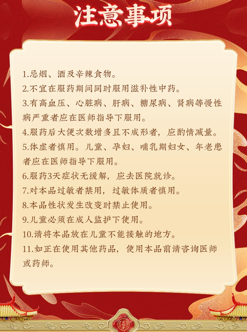 2、不宜在服药期间同时服用滋补性中药。