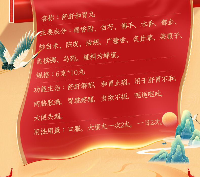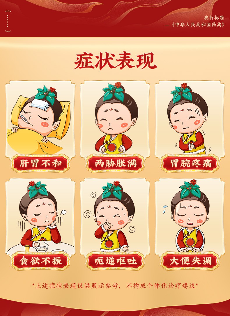 【成份】:主要成分为香附(醋制)、白芍、佛手、木香、郁金、柴胡、白术(炒)、陈皮、广藿香、槟榔(炒焦)等13味。